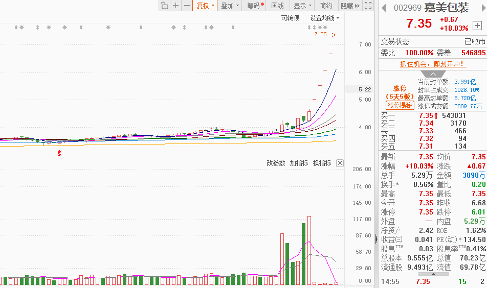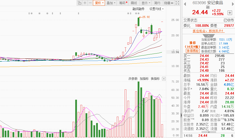 市场情绪:市场热点快速轮动,全市场近3900只个股下跌。今日全市场共54股涨停,连板股总数17只,21股封板未遂,封板率为72%(不含ST股、退市股)。焦点股方面,福建本地股安记食品16天9板、鹭燕医药5连板,实控人变更的胜通能源8连板、嘉美包装5连板,商业航天概念股神剑股份4连板。
