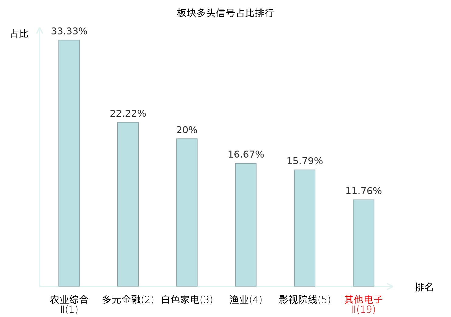 从主力宝信号数据分析,睿能科技所属的其他电子Ⅱ板块中共4只股票发出主力多头信号,主力多头信号占比在全行业中排名第19位,较昨日上升46位;较高的排名表明主力对于该板块整体看多意愿较强,此次排名大幅上升可能反映了主力对该板块态度的显著强化;全市场所有行业板块中主力多头信号占比排名中,农业综合Ⅱ板块位居第一;农业综合Ⅱ板块名次提升最快,较昨日上升127位;这些变动揭示了不同行业间主力资金动向的结构性变化,为投资者判断板块相对强度及潜在关注方向提供了客观依据。