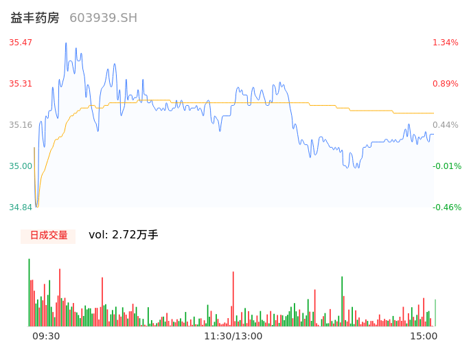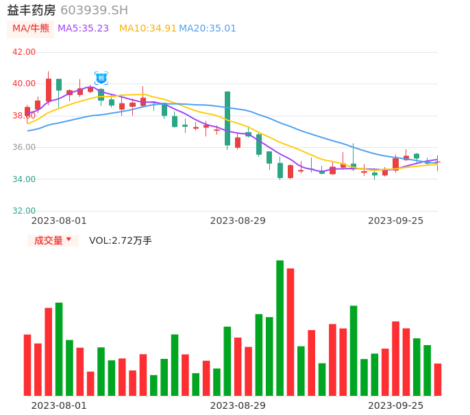 09月25日,益丰药房收报35.09,股价涨幅0.26%,成交金额9584.64万元,换手率0.27%。