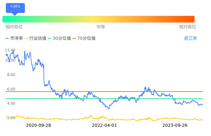 益丰药房当前市净率PB为3.93,在所属的医药商业中,市净率PB排29,前五名分别为重药控股市净率0.88、瑞康医药市净率0.96、嘉事堂市净率0.99、上海医药市净率1.02、国药一致市净率1.04。益丰药房当前市净率PB为3.93,超过近3年6.88%的历史数据。