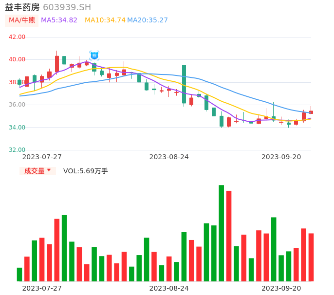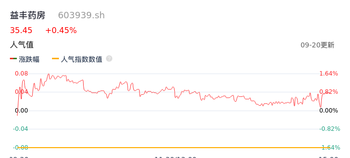 09月20日,益丰药房收报35.45,股价涨幅0.45%,成交金额2.02亿元,换手率0.57%。