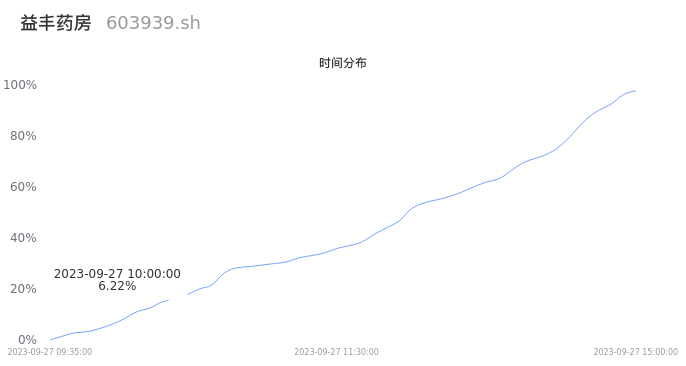 603939益丰药房2023年09月27日成交4.30万手,成交金额1.52亿元,相较昨日缩量4955手,换手率0.43%,成交清淡。