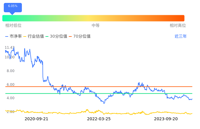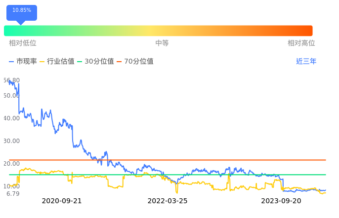 2023年09月20日,益丰药房上涨0.45%收于35.45,今日成交金额2.02亿元。下文将从市盈率PETTM、市净率PB、市现率3个角度去分析公司估值情况。