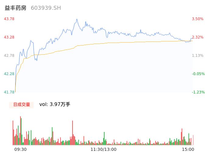 04月18日,益丰药房收报43.25,股价涨幅2.25%,成交金额1.73亿元,换手率0.40%。