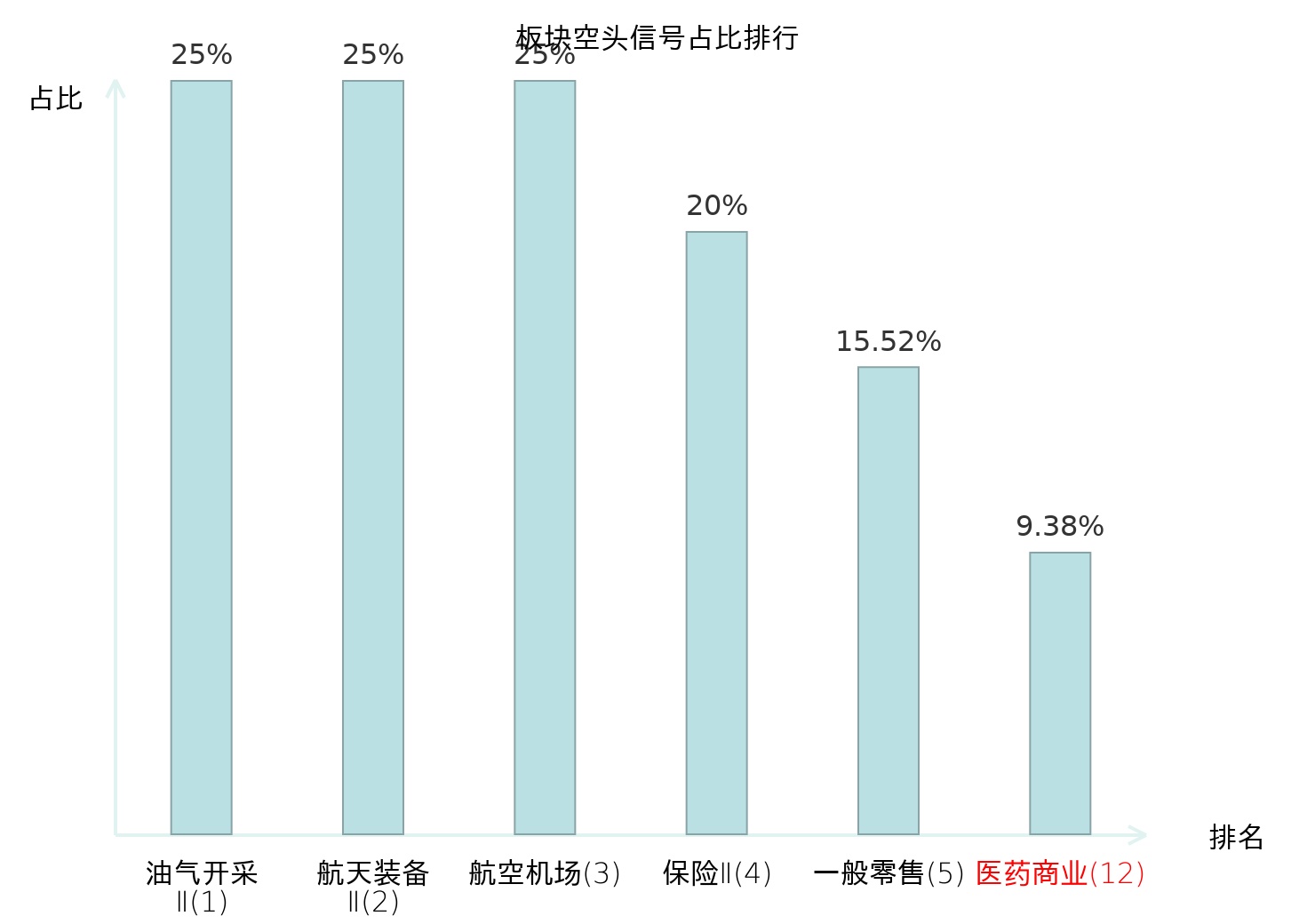 全市场所有行业板块中主力空头信号占比排名中,油气开采Ⅱ板块位居第一。航空装备Ⅱ板块名次提升最快,较昨日上升121位。