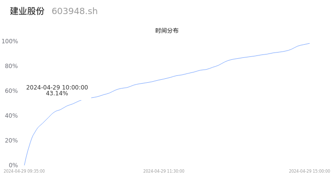 603948建业股份2024年04月29日成交4.49万手,成交金额8470.45万元,相较昨日放量3.04万手,换手率2.78%,成交清淡。