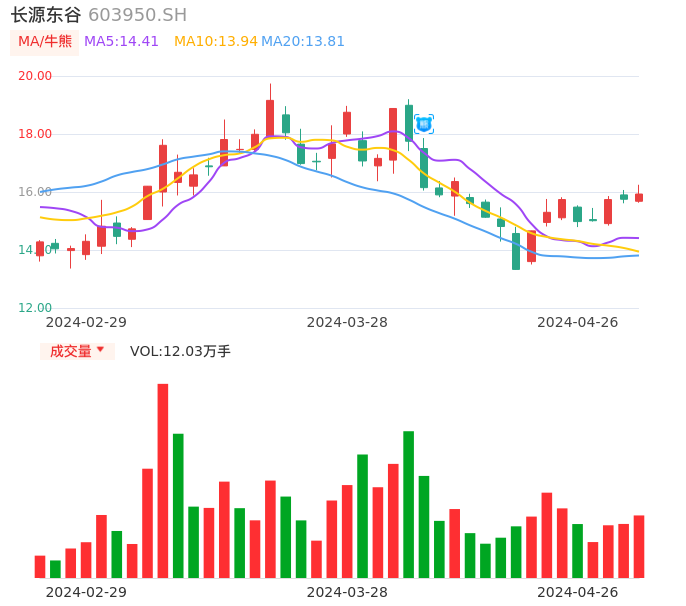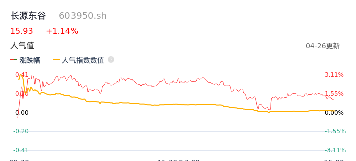 04月26日,长源东谷收报15.93,股价涨幅1.14%,成交金额1.93亿元,换手率3.71%。