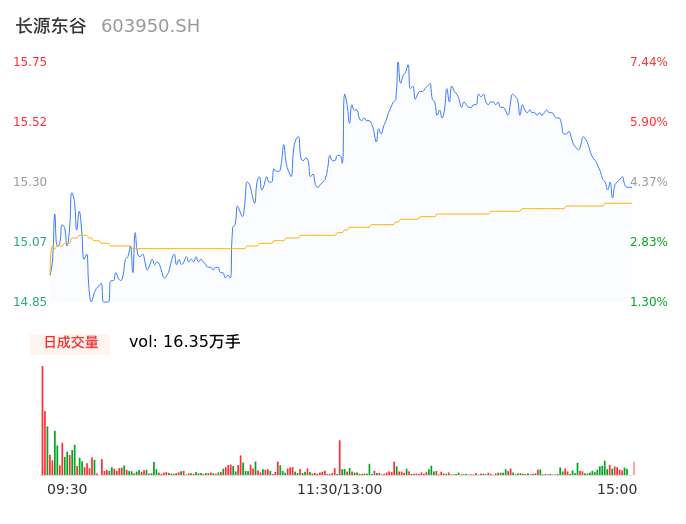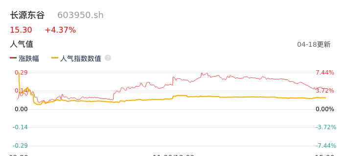 04月18日,长源东谷收报15.30,股价涨幅4.37%,成交金额2.50亿元,换手率5.06%。