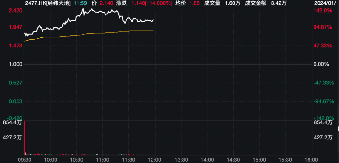 今天港股市场上市的新股经纬天地表现较好,盘中涨幅一度超140%。