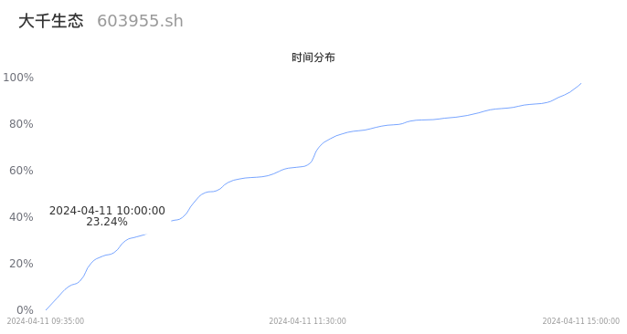 603955大千生态2024年04月11日成交1.93万手,成交金额2476.52万元,相较昨日缩量3420手,换手率1.42%,成交清淡。