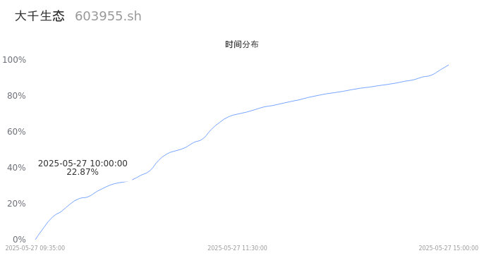 603955大千生态2025年05月27日成交10.95万手,成交金额3.92亿,相较昨日缩量3729手,换手率8.07%,成交清淡。