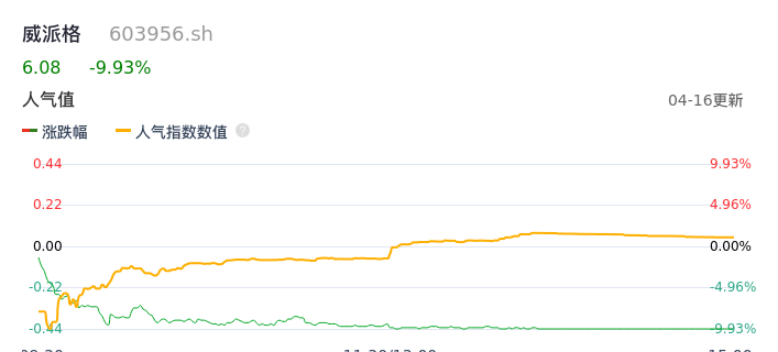 04月16日,威派格收报6.08,股价涨幅-9.93%,成交金额3505.57万元,换手率1.11%。