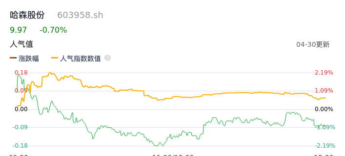 04月30日,哈森股份收报9.97,股价涨幅-0.70%,成交金额6013.41万元,换手率2.74%。