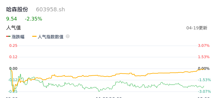 04月19日,哈森股份收报9.54,股价涨幅-2.35%,成交金额5068.74万元,换手率2.42%。