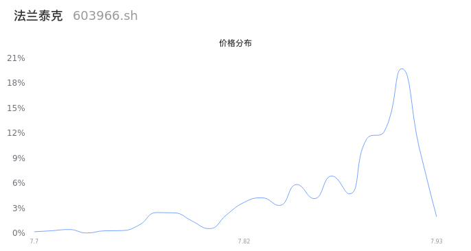 根据成交分布分析,该股票当天缩量成交,成交清淡。时间上看,早盘前半小时成交量占据当天总成交量的29.12%;价格上看,成交呈现右偏峰。成交分布分析主要研究股票成交的分布特性,不具有预测功能,请知悉。