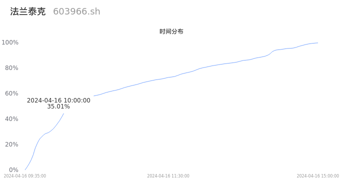 603966法兰泰克2024年04月16日成交13.21万手,成交金额9661.52万元,相较昨日放量4.10万手,换手率3.67%,成交清淡。
