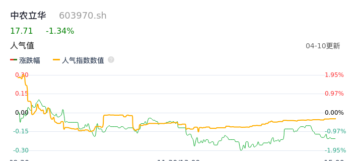 04月10日,中农立华收报17.71,股价涨幅-1.34%,成交金额2206.94万元,换手率0.46%。