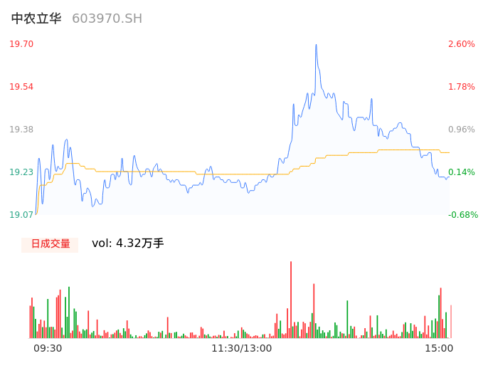 04月26日,中农立华收报19.22,股价涨幅0.10%,成交金额8328.73万元,换手率1.61%。