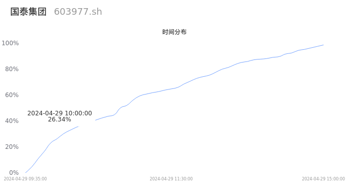 603977国泰集团2024年04月29日成交25.77万手,成交金额3.21亿元,相较昨日放量15.44万手,换手率4.15%,成交清淡。
