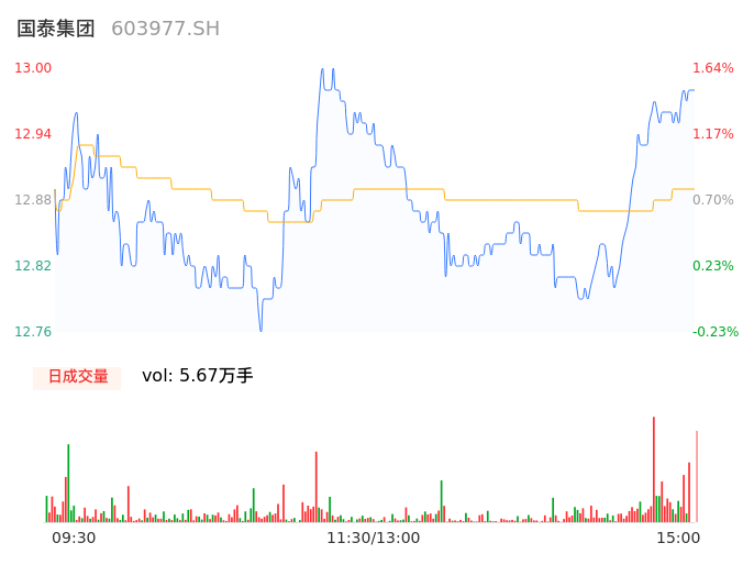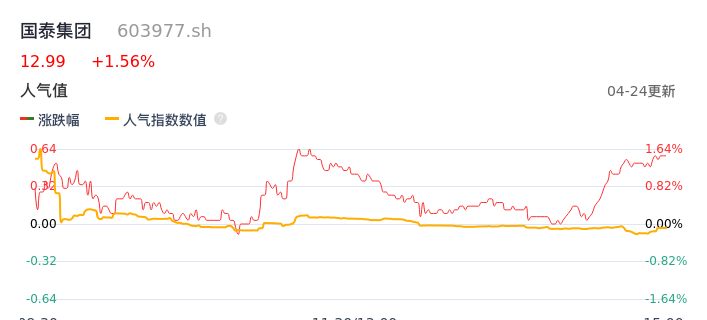 04月24日,国泰集团收报12.99,股价涨幅1.56%,成交金额7306.73万元,换手率0.91%。