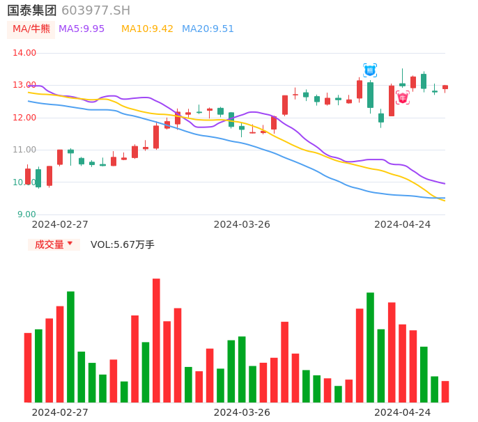 值得注意的是:2024年04月海通证券的刘威/李智分析师,首次发布关于国泰集团的研究报告,标题为:国泰集团(603977):电子雷管及高氯酸钾带动增长 军工新材料支撑发展。