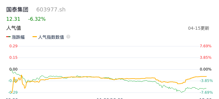 04月15日,国泰集团收报12.31,股价涨幅-6.32%,成交金额2.09亿元,换手率2.68%。
