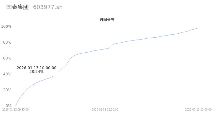603977国泰集团2026年01月13日成交41.21万手,成交金额6.31亿,相较昨日放量7.41万手,换手率6.63%,成交清淡。