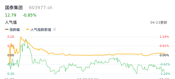 04月23日,国泰集团收报12.79,股价涨幅-0.85%,成交金额8023.16万元,换手率1.01%。