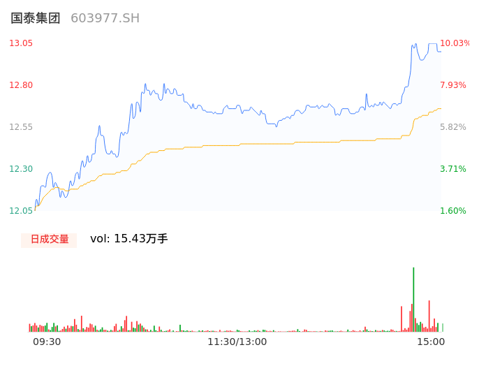 04月17日,国泰集团收报12.98,股价涨幅9.44%,成交金额1.95亿元,换手率2.48%。