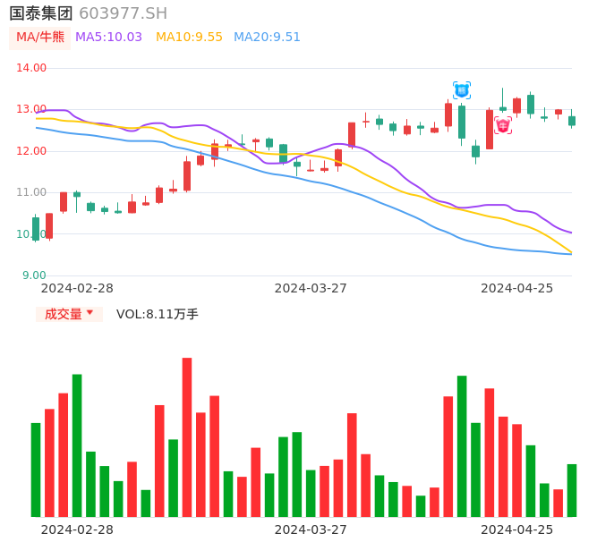 值得注意的是:2024年04月海通证券的刘威/李智分析师,首次发布关于国泰集团的研究报告,标题为:国泰集团(603977):电子雷管及高氯酸钾带动增长 军工新材料支撑发展。