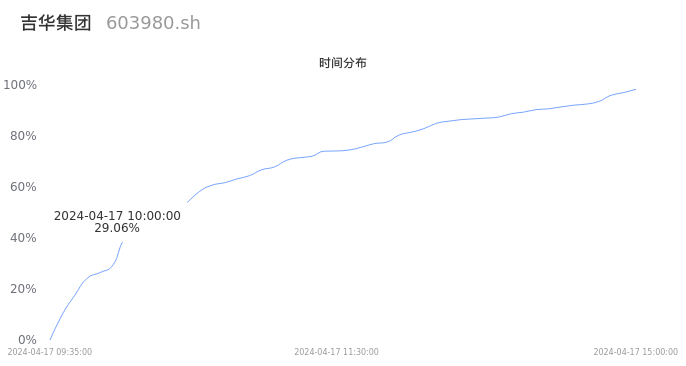 603980吉华集团2024年04月17日成交7.72万手,成交金额2727.03万元,相较昨日缩量5.98万手,换手率1.10%,成交清淡。
