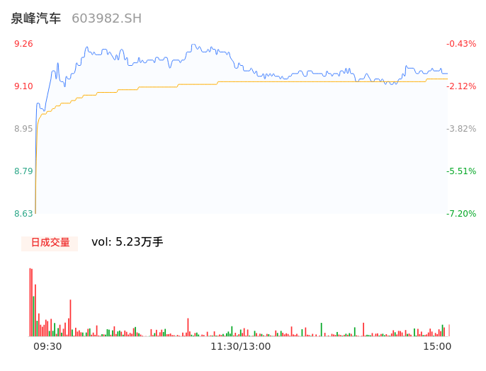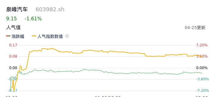 04月25日,泉峰汽车收报9.15,股价涨幅-1.61%,成交金额4776.99万元,换手率2.15%。