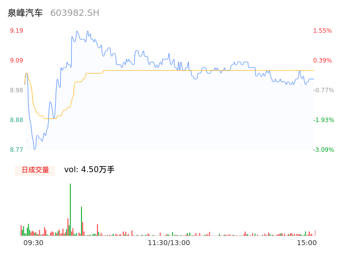 04月22日,泉峰汽车收报9.02,股价涨幅-0.33%,成交金额4074.36万元,换手率1.85%。