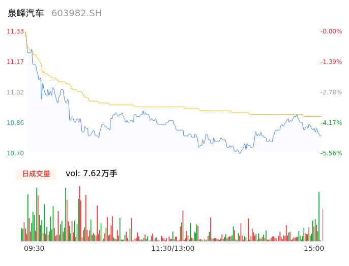 04月10日,泉峰汽车收报10.81,股价涨幅-4.59%,成交金额8295.56万元,换手率3.13%。