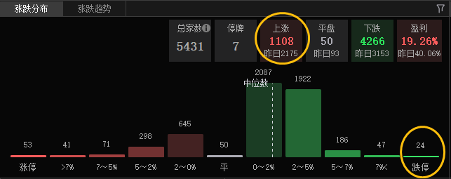 红盘个股1100家,涨停53,跌停24,个股中位数缩窄到-2%以内。跌停股集中在ST和内需消费上。赚钱效应不佳。