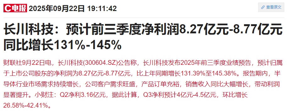 除了光刻机光刻胶,今天全天半导体设备方向都比较强势,昨天长川科技公布前三季度的业绩预告,二三季度的净利润增长明显,再创新高。竞价一字板开盘后,盘中开了又快速回封涨停,走了一个T字板,而矽电股份20厘米涨停,华峰测控大涨10%,多股大涨超5%,半导体设备也是属于高景气度的方向。一旦光刻机国产量产确认的话,会加速国产替代进程,机构预测到2027年,中国光刻机国产化率将从当前的10%跃升至40%。也必然会增加相关设备需求,尤其是刻蚀和沉积在内的半导体设备的需求,推动相关设备企业的发展。目前低位的机会不多,而且大部分个股的价格都不低,就先看看先锋精科吧,这个位置看看如果短期平台的突破可能会有一笔波段的上升行情机会。