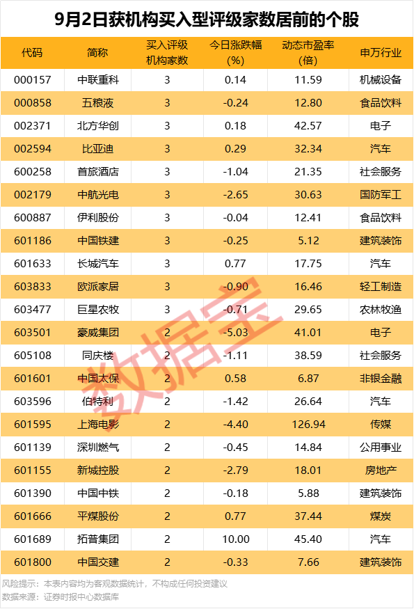 从行业来看,汽车行业最受青睐,比亚迪、长城汽车等25股上榜机构买入评级榜。机械设备、电子等行业也较受机构关注,分别有20股、19股上榜。
