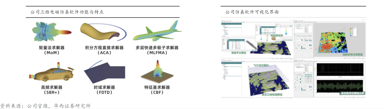 国内领先的电磁仿真与测量系统厂商,技术达国际先进水平。公司依托自主研发的算法技术体系,根据下游行业的发展需求,构建了电磁场仿真分析验证、电磁测量系统、相控阵产品三大业务板块,主要服务于特种、卫星、通信、汽车等高端制造业的产品研发、生产及应用。公司是业内极少数同时掌握电磁仿真设计和校准测量两类算法技术的企业。