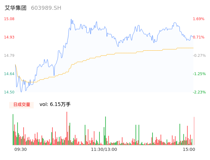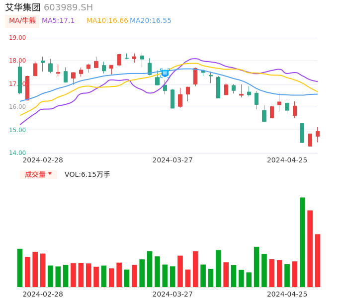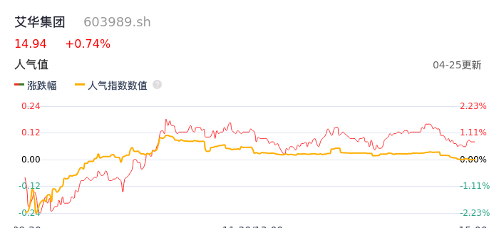 04月25日,艾华集团收报14.94,股价涨幅0.74%,成交金额9131.46万元,换手率1.53%。