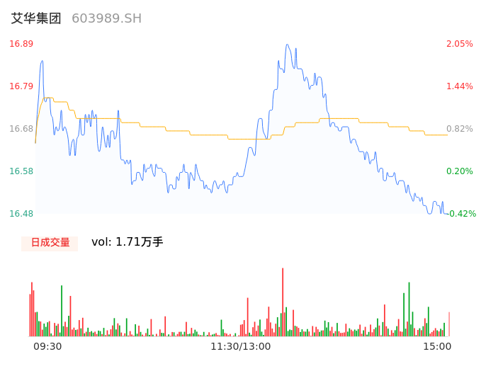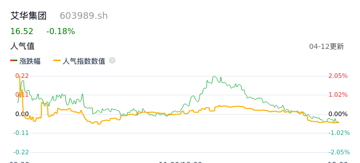 04月12日,艾华集团收报16.52,股价涨幅-0.18%,成交金额2847.24万元,换手率0.43%。