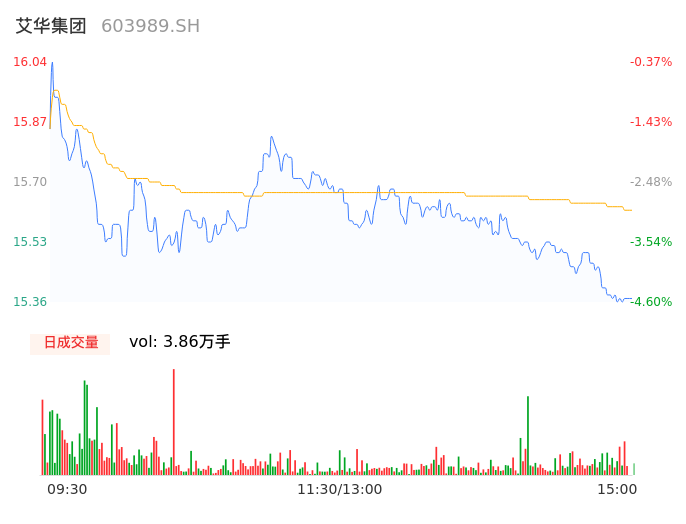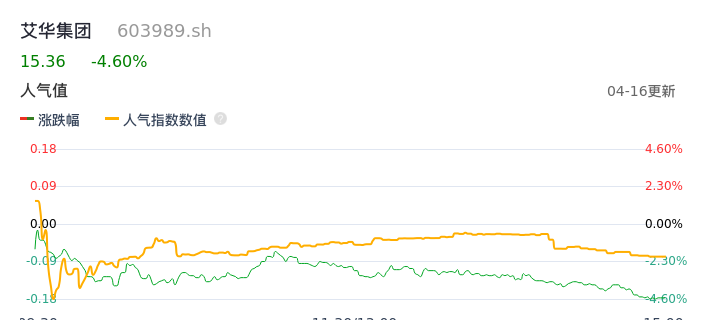 04月16日,艾华集团收报15.36,股价涨幅-4.60%,成交金额6026.45万元,换手率0.96%。