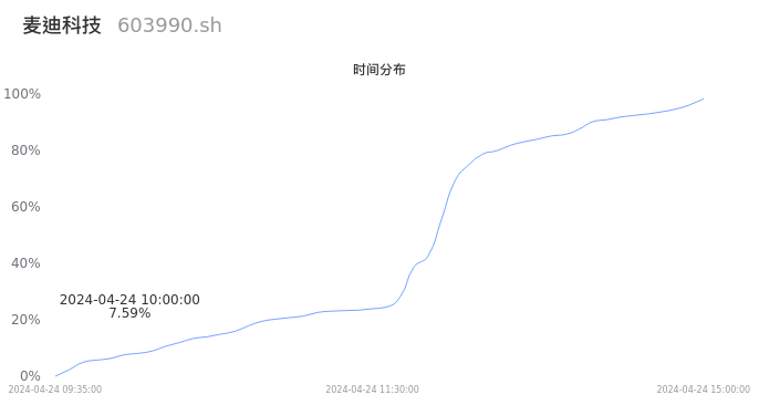 603990麦迪科技2024年04月24日成交8.55万手,成交金额8455.32万元,相较昨日放量4.81万手,换手率3.07%,成交清淡。