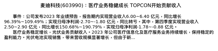 值得注意的是:2024年03月太平洋的刘强/梁必果/钟欣材分析师,首次发布关于麦迪科技的研究报告,标题为:麦迪科技(603990):医疗业务稳健成长 TOPCON开始贡献收入。
