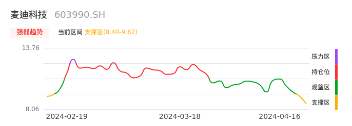 04月16日,麦迪科技收报8.83,股价涨幅-7.92%,成交金额7214.46万元,换手率2.87%。