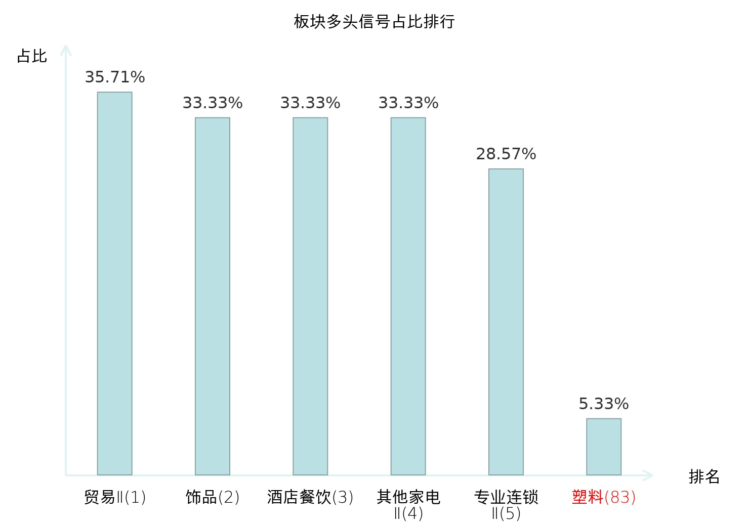 从主力宝信号数据分析,至正股份所属的塑料板块中共有4只股票发出主力多头信号,主力多头信号占比在全行业中排名第83位,较昨日下降42位。较高的排名表明主力当日买入意愿较强,此次排名下降可能反映了主力对该板块态度的调整。全市场所有行业板块中,贸易Ⅱ板块的主力多头信号占比最高,位居第一;其他家电Ⅱ板块名次提升最快,较昨日上升125位。这些变化揭示了不同行业间主力资金偏好的变化,为投资者提供了市场趋势的重要参考。