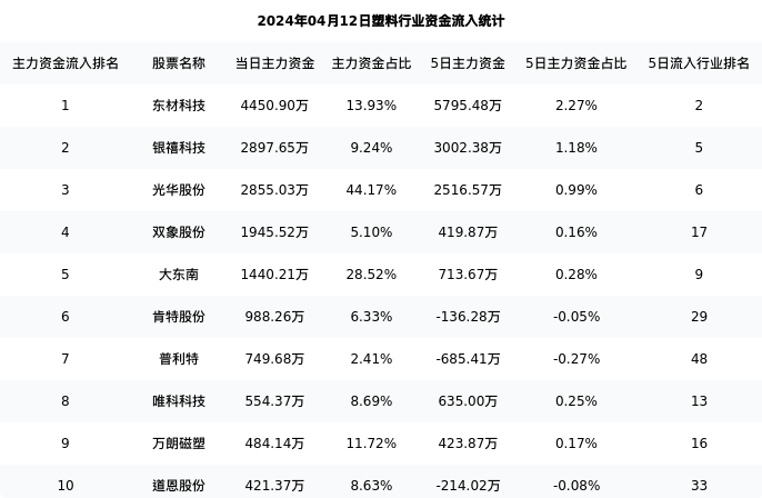 从主力资金流向来看,塑料行业今日主力资金流入15.17亿元,在所有申万二级行业中排名:75/131。