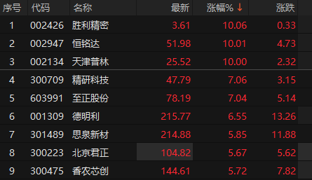 电子板块拉升 胜利精密等多股涨停