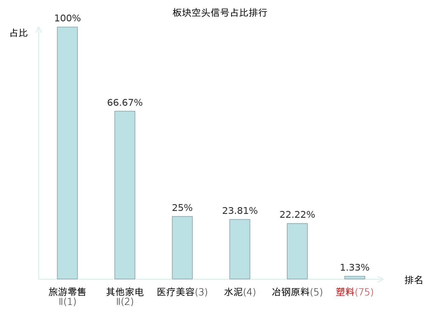 从主力宝信号数据分析,至正股份所属的塑料板块中共1只股票发出主力空头信号,主力空头信号占比在全行业中排名第75位,较昨日上升13位。排名越高说明主力当日卖出意愿越强,此次排名上升可能反映了主力对该板块态度的渐趋谨慎。全市场所有行业板块中,旅游零售Ⅱ板块的主力空头信号占比最高,位居第一。电机Ⅱ板块名次提升最快,较昨日上升113位。这些变动揭示了不同行业间主力资金动向的趋势,为投资者提供了市场情绪和潜在投资机会的重要线索。