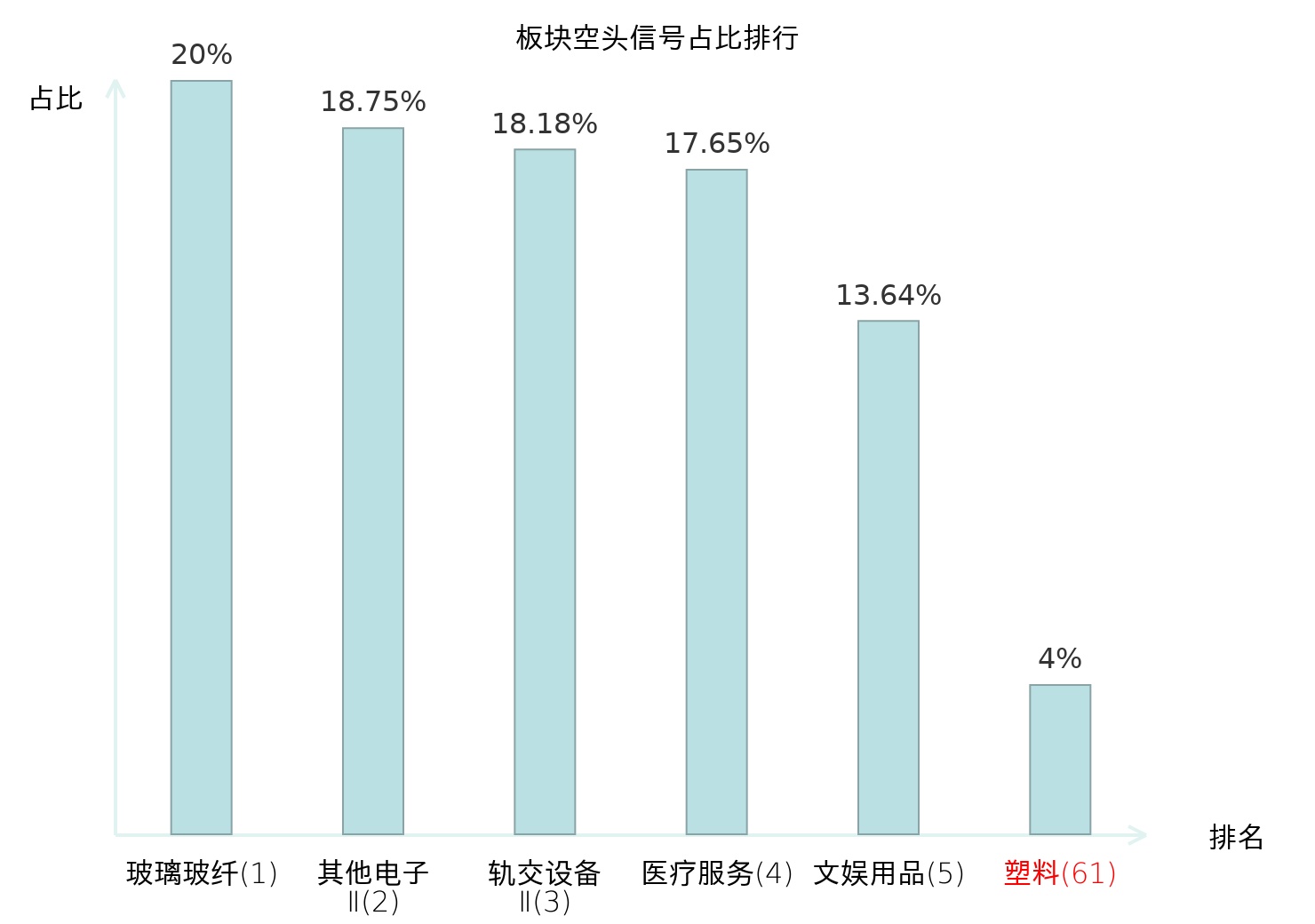 全市场所有行业板块中主力空头信号占比排名中,玻璃玻纤板块位居第一。医疗服务板块名次提升最快,较昨日上升126位。