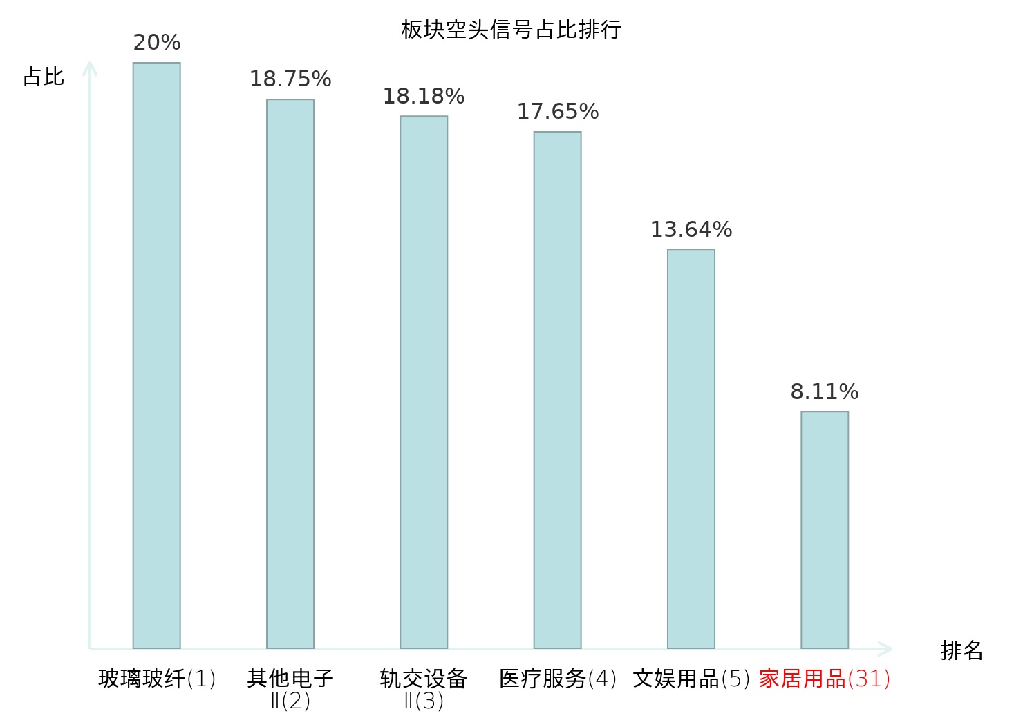 全市场所有行业板块中主力空头信号占比排名中,玻璃玻纤板块位居第一。医疗服务板块名次提升最快,较昨日上升126位。